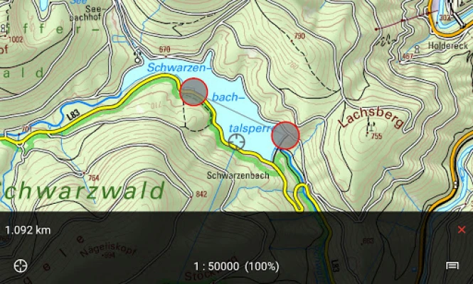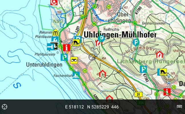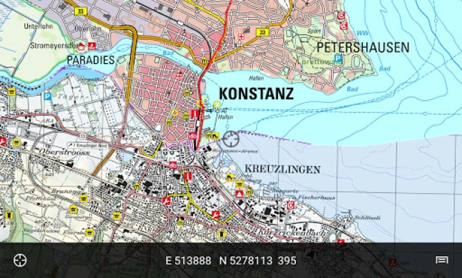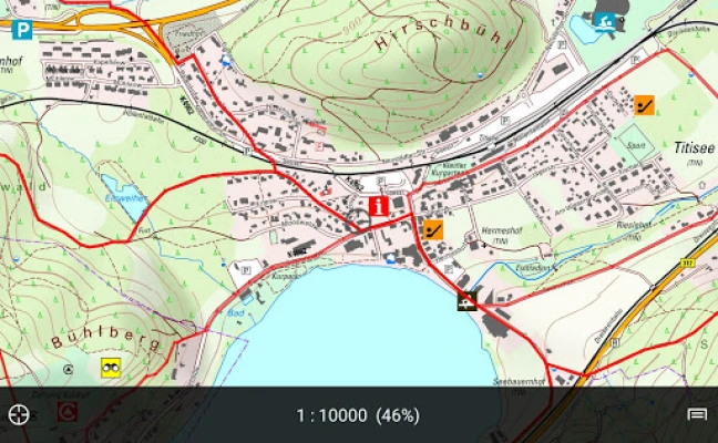 BW Map mobile brings onboard topographic maps of Baden-Württemberg, Lake Constance and its surroundings in scales of 1:10 000 to 1:1 Mio to your Smartphone or Tablet as well as a dense network of cycle and hiking trails. The most important features are search for place names and coordinates, GPS-positioning incl. moving map, timetable for public transport, measuring and record Points of Interest and Routes.