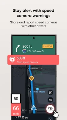 Avoid delays and bottlenecks with accurate traffic data updated in real time. Receive warnings about road closures, congestion, and incidents ahead. With live traffic updates, the app automatically adjusts your navigation route to keep you moving efficiently.