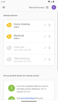 • On your Android device, open the app and tap on any of your online computers to connect.